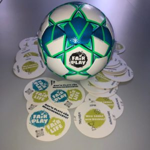 Ein Tischkicker- oder Fußballturnier mit Fairen Fußbällen organisieren. Eine Checkliste des Deutschen Fußballbundes (DFB) gibt es hier zum Download. Ebenso möglich ist ein Turnier „Fair play: Fair life – Straßenfußball für Toleranz”. Eine Anleitung dazu gibt es hier.