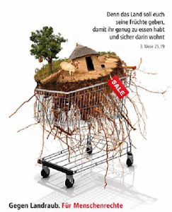 Quelle ist das Informationsmaterial zur Menschenrechtsaktion der Vereinten Evangelischen Mission (VEM) von 2012: „Gegen Landraub. Für Menschenrechte“. Mehr Informationen gibt es auf den Webseiten von Brot für die Welt und VEM.